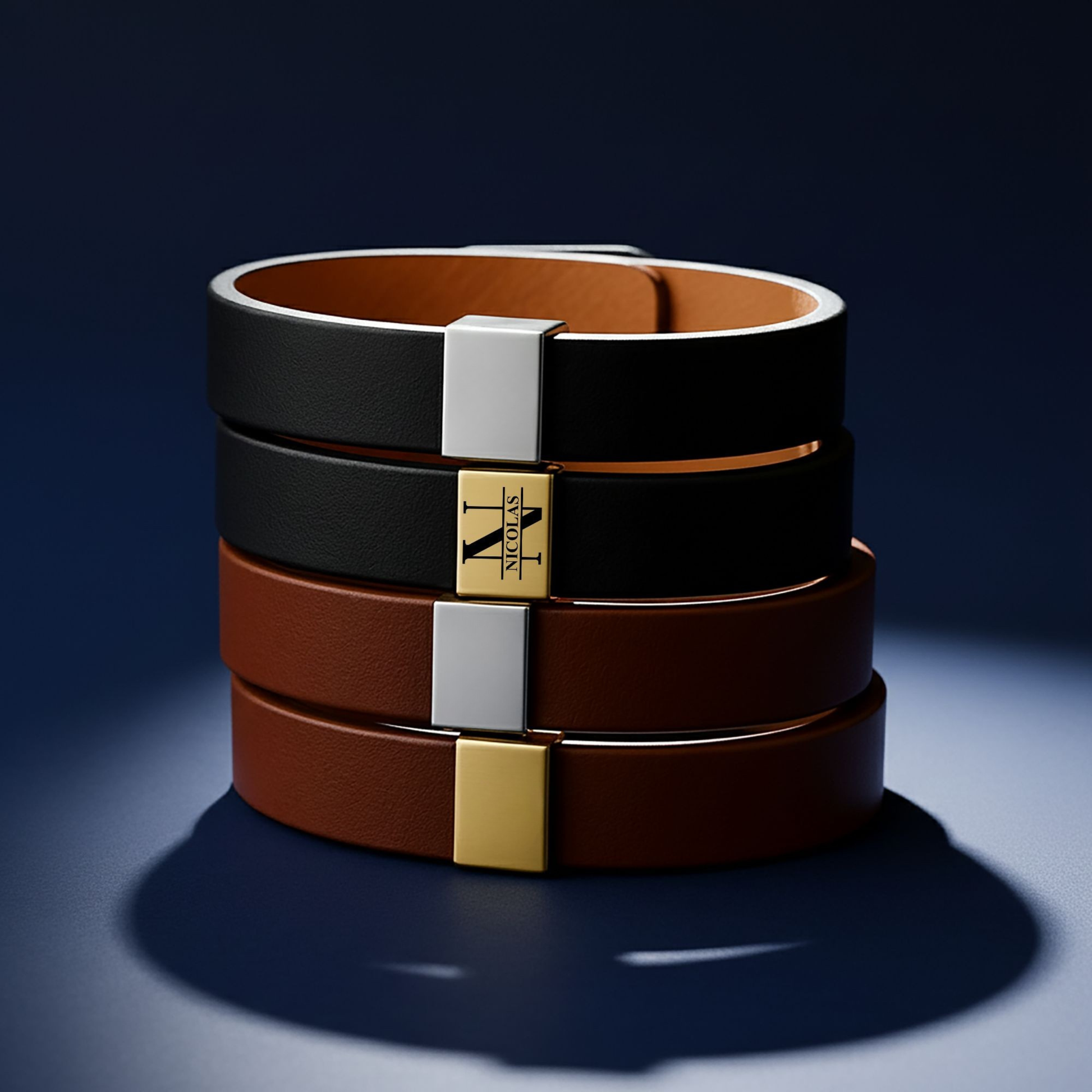 - Color Options: Black or Brown Vegan Leather Band with Steel Silver or 18k Gold Metal Plate